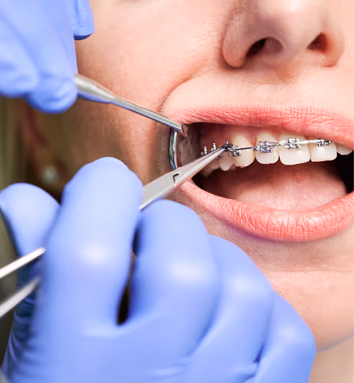 Brackets made of metal or ceramic that slowly move teeth into the correct position.